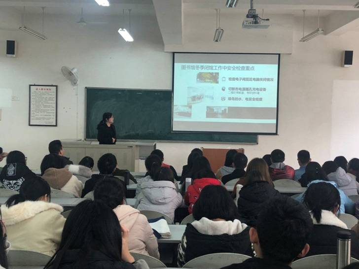 陈文婷老师为大家讲解图书馆冬季闭馆工作安全检查要点 曹诗蕾 摄