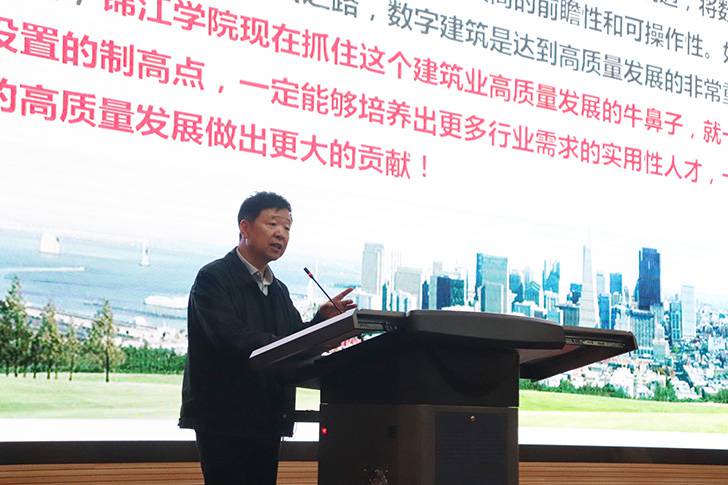 讲座开始前,我校特聘教授谭新亚以“建筑行业高质量发展与数字建筑的关系”为主题,与大家进行了交流分享。他指出,绿色施工是智慧工地的载体,智慧工地是数字建设的重要环节。建筑业要实现高质量发展,就必须进行数字化转型。他希望同学们抓住机遇,学习更多数字建筑实用性专业知识,为以后的就业奠定坚实基础。