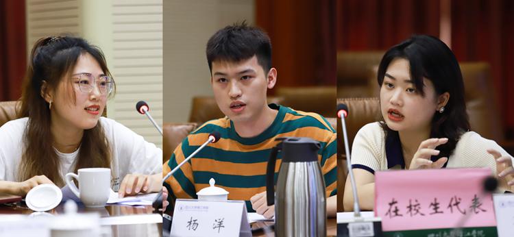 校友代表、四川工商学院产品设计专业教师、我校2016届毕业生周静,成都杰辰科技有限公司产品设计师、2021届毕业生杨洋和在校生代表分别从工作实践和在校学习等方面对人才培养方案重构提出了建议。