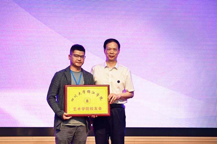 韦泰旭副校长向艺术学院校友分会授会牌,并与艺术学院胡绍中院长一同向艺术学院校友分会第一届理事会颁发聘书。