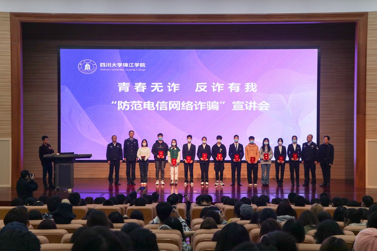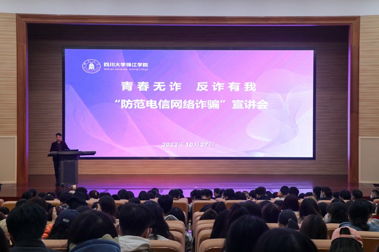 10月27日上午,我校联合四川省公安厅、眉山市公安局、彭山区公安分局在学术会堂举行“青春无诈 反诈有我”防范电信网络诈骗宣讲会。我校各学院师生代表500人参加宣讲会。副校长林宇,四川省反诈中心、眉山市公安局刑警支队、彭山区公安分局刑警大队相关领导出席宣讲会。