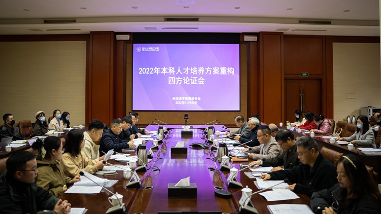 11月30日下午,学校在行政楼101会议室先后举行德语专业、日语专业本科人才培养方案重构“四方论证会”。校长晏世经、副校长杨家仕出席会议。德语专业邀请了四川省经济合作局国际合作处赵翀,教育部大学外语教学指导委员会委员、西南交通大学外国语学院德语系教授、博士生导师莫光华,四川省翻译协会副会长李在辉和北大方正人寿保险公司涉外业务部经理李林啸分别作为政府专家、高校专家、行业专家、企业专家出席论证会。日语专业邀请到中国西南地区首位获得日本外务大臣表彰奖、四川省国际科技合作协会顾问梁晋,四川大学出国人员培训部教授、日本早稻田大学硕士毕业生评审委员会委员车小平,成都体育学院外国语学院院长、博士生导师李在辉和四川格睿泰思信息科技有限公司总经理赵向彪分别作为政府专家、高校专家、行业专家、企业专家参加论证。两个专业的校友代表,在校生代表参加会议。副校长何志伟主持会议。