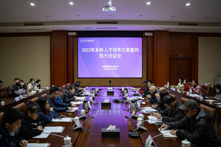 日语专业人才培养方案论证会上,李在辉教授建议进一步优化实践课程和选修类课程学分比重。梁晋认为,要对接服务国家重大区域发展战略,切实培养多元复合型、高素质应用型人才。车小平教授对“日语+IT”“日语+教育”“日语+商务”教学模式给予高度肯定。赵向彪总经理结合企业人才需求,建议同学们练就扎实的语言功底,熟悉商务礼仪,提高交流沟通能力,切实提升“脑力、体力、心力”。