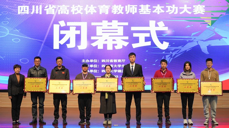 颁发四川高校教师体育基本功大赛公共体育组团体奖