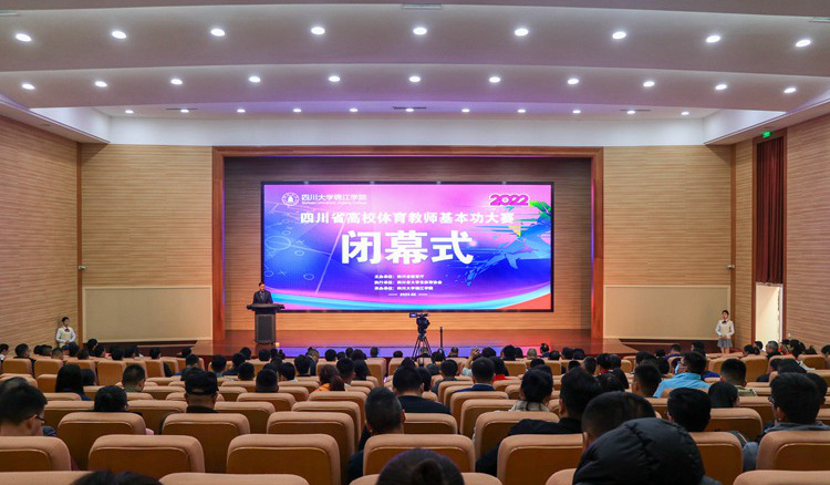 四川省大学生体育协会会长杨远波教授致闭幕词。他说,此次高校体育教师基本功大赛的举办为全省高校教师提供了一个交流学术、切磋技能的平台,充分展示出四川高校体育教师扎实的基本功,为全面推动四川省高校体育教学改革,鼓励青年教师提高专业技能、强化教学基本功具有重要意义。