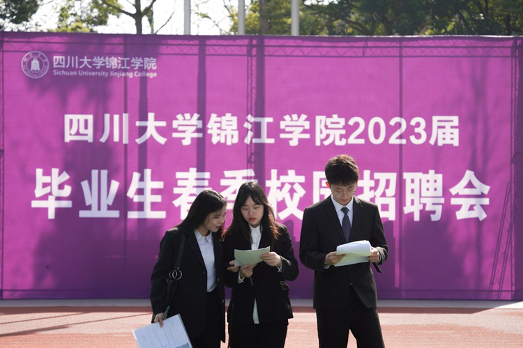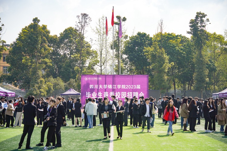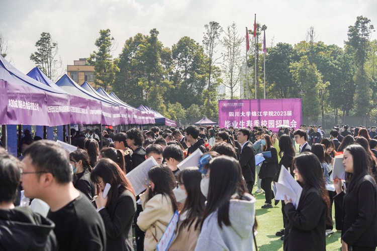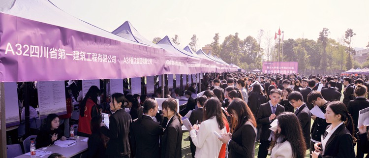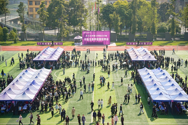 3月29日,我校2023届毕业生春季校园招聘会在田径运动场热烈举行,中国石油天然气第一建设有限公司、格力电工、四川省第十五建筑有限公司、德阳三环科技有限公司、成都士兰半导体制造有限公司、文君集团、金六福、伊利乳业、泉州惠晟燃气有限公司等123家企事业单位,以及邛崃市就业局、眉山市教体局、成都市武侯区人才交流中心、成都市温江区人才交流中心进校,为毕业生提供涵盖文、理、工、商、艺等学科门类的2700多个就业岗位。