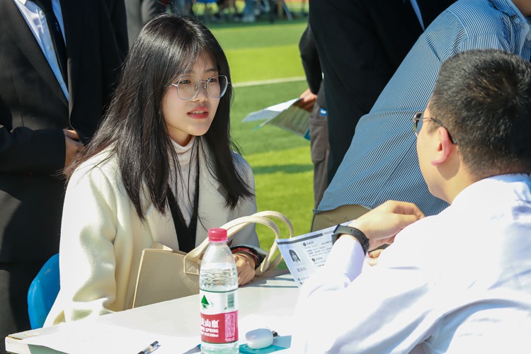 招聘会现场,人潮涌动,气氛热烈。张桂芳董事长、晏世经校长、林红书记等学校领导和相关部门负责人到场与各单位招聘负责人、应聘学生亲切交谈,详细了解招聘单位的用人需求和毕业生的求职意愿。同学们身穿正装,带着精心准备的简历和自荐信来到展位前,就工作内容、发展前景、薪资待遇等问题向招聘单位咨询。