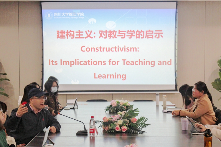 培训中,王尔德教授从“建构主义:理论与研究”“对教学与学习的影响”“建构主义:实施方法”三个方面生动讲解建构主义理论对教与学的启示。