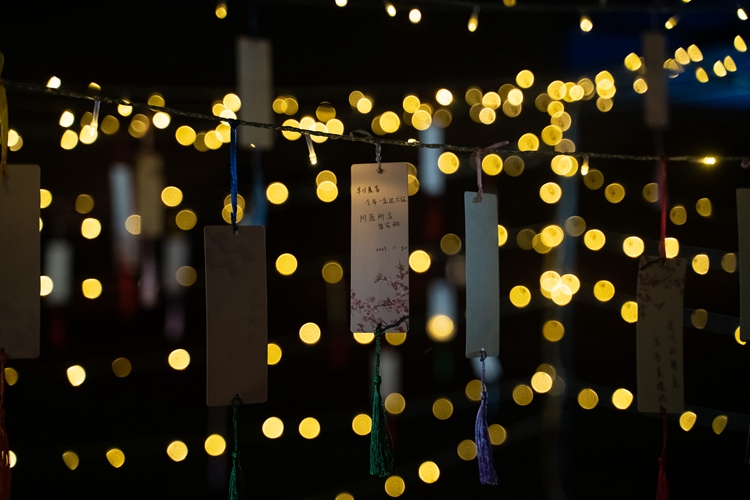 台上,一首《多远都要在一起》拉开晚会序幕,街舞社带来舞蹈《Venus》点燃现场。台下师生手拉手、围成圈,围着篝火跳起热闹的达体舞,将晚会气氛推向高潮。抽奖环节更是激动人心,二维码投放至大屏,师生踊跃扫码、参与抽奖,期待值拉满,掌声欢呼声一浪高过一浪。现场还有糖葫芦、蛋烘糕、醪糟小汤圆等小吃令人食指大动,暖心更暖胃,让人好不开心。心愿墙周围更是人头攒动,师生纷纷写下新年愿望,同时不忘拿出手机和亲人朋友分享,橘红色火光将大家的笑脸映衬得温暖明亮。