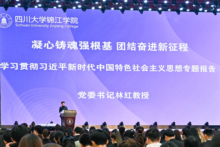 林红书记以“凝心铸魂强根基 团结奋进新征程”为题作学习贯彻习近平新时代中国特色社会主义思想专题报告。林书记指出,学习宣传新思想,一要坚持读原著学原文悟原理,领会新思想的形成背景、核心要义、实践指向;二要注重调查研究和实践运用转化;三要注重问题导向,把解决问题作为个人成长进步的阶梯。林书记还向新任学生干部提出了希望:希望大家坚定理想信念,在学深悟透新思想中树立崇高信仰;恪守学生本分,在服务与实践中砥砺坚毅品行;重视锤炼本领,在履职尽责中做到知行合一;坚持群众路线,在作用发挥中扛起责任担当。