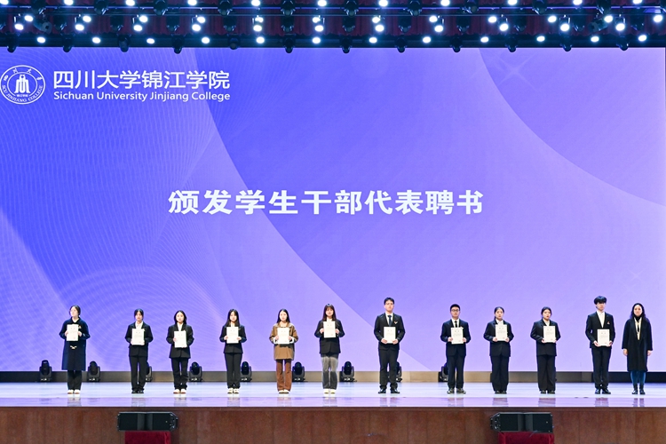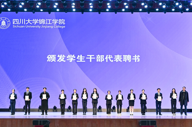 活动伊始,与会领导为2023—2024学年新任学生干部代表颁发聘书。第十八届学生干部代表、校学生会主席团成员周俊吉作表态发言,表示将胸怀崇高理想、紧跟时代步伐,以更加清醒的认识、更加主动的姿态、更加执着的努力,真正做到全心全意为同学服务,积极发挥联系广大学生的桥梁和纽带作用。