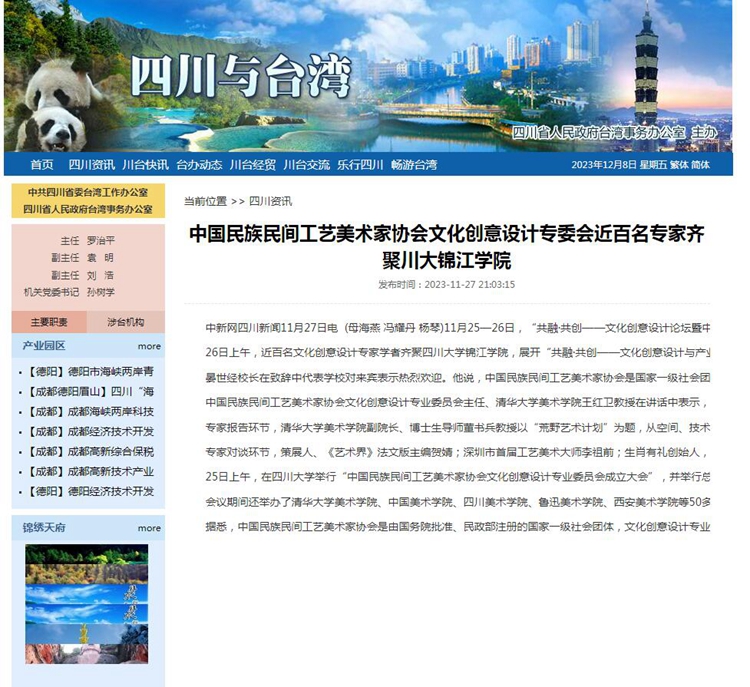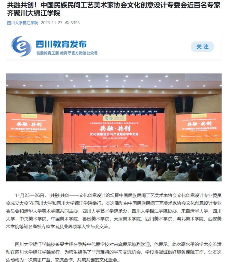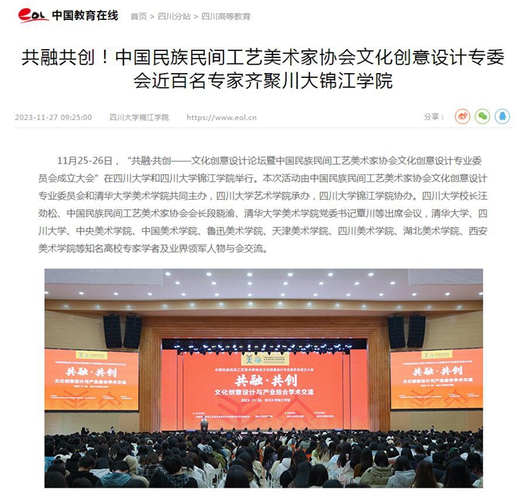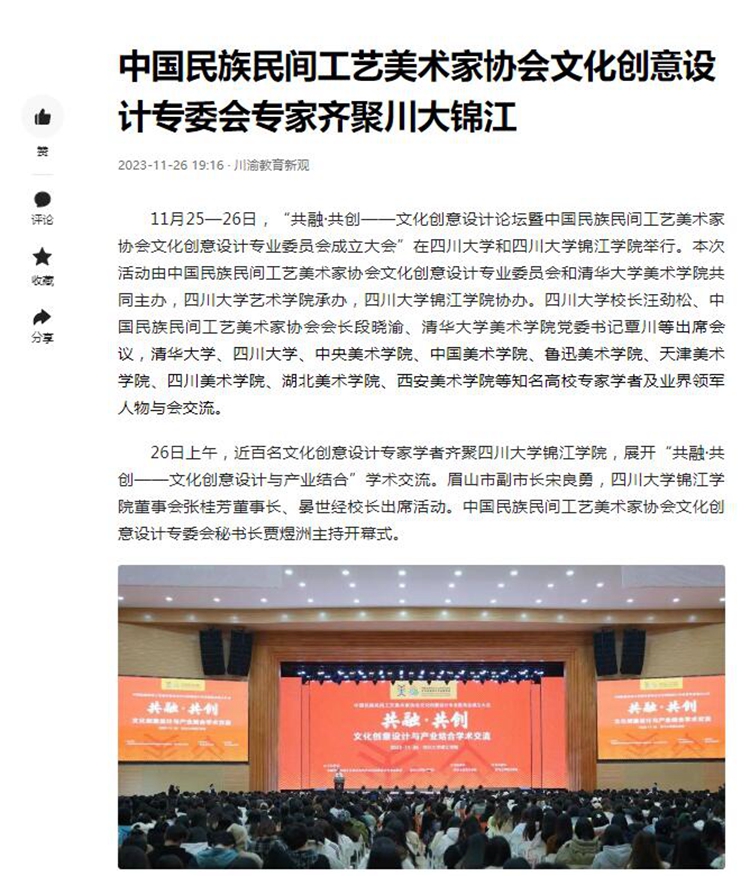 《中国民族民间工艺美术家协会文化创意设计专委会近百名专家齐聚川大betvictro伟德app下载学院》获主流媒体广泛关注