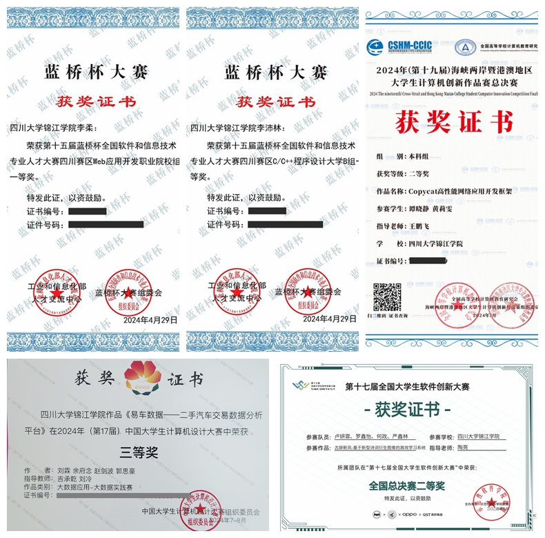 近年来,创新实验室完成了绿满堂官网开发”“智慧水务管理系统”等30多个项目,真正让学生创新项目成果走上了“货架”,打通了人才培养到社会的最后一公里。此外,实验室学生还获得了“中国大学生计算机设计大赛”全国三等奖、“海峡两岸暨港澳地区大学生计算机创新作品赛”全国二等奖、“第十五届蓝桥杯全国软件和信息技术专业人才大赛”省一等奖等奖项80余项。