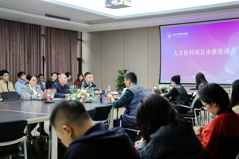 为进一步提升学校人文社科项目申报质量,激发教师科研热情,11月14日下午,学校在第八教学楼207会议室举办人文社科项目申报培训会。四川大学社科处负责项目与成果的专家刘孝利副研究员为老师们作项目申报培训,我校外国语学院邬娜副教授作项目申报经验分享。校长助理兼科研处处长成和平主持培训会。