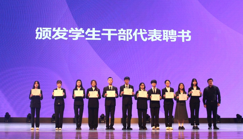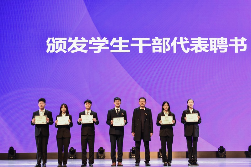 校党委副书记、副校长钱臣林在讲话中指出,广大学生干部在学校改革建设中,发挥了桥梁纽带作用,展现了青年学子团结奋斗的精神风貌和青春风采。此次学生干部聘任大会,就是要进一步增强同学们的责任心和荣誉感,引导大家进一步发挥好各级各类学生组织的战斗堡垒作用和学生干部的先锋模范作用。钱副书记对全体学生干部提出三点希望,一是要聚焦政治引领,当好桥梁纽带,服务中心大局,加强自身建设,全面提升学生组织的大局贡献度、同学满意度、社会认可度;二是要引领广大同学在勇于担当时代使命的过程中经风雨、见世面、壮筋骨、长才干,在中国式现代化建设中挺膺担当;三是要恪守学生本分,把学习作为首要任务,紧扣服务同学工作生命线,为同学办实事、解难事,做同学知心人、引路人;四是要重视锤炼本领,认真履职尽责,坚持自信自立,勇于担当、甘于奉献,努力做到挺膺担当、知行合一。