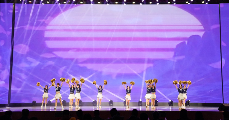 比赛现场,各参赛队活力“舞”限。和着动感音乐与节拍,参赛队员们旋转轻盈流畅、踢腿刚劲有力、跳跃活力四射……舞姿尽显青春动感;托举默契配合、人塔稳固壮观、抛接精准无误……接连上演的高难度技巧动作令人目不暇接,一个个饱含精彩创意的啦啦操表演引得观众欢呼声、掌声一浪高过一浪。本次大赛还设置了互动抽奖环节,大家踊跃参与,期待值拉满,不断将现场气氛推向高潮。