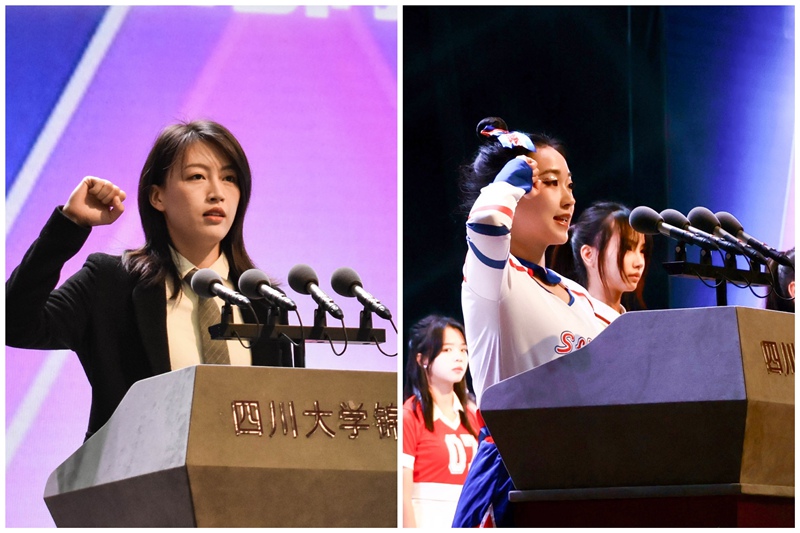 四川省大学生体育协会会长杨远波,四川省大学生体育协会副会长毛晓峰,四川省大学生体育协会竞赛部部长吕志刚,我校党委书记林红、副校长何志伟及相关部门负责人和我校师生代表等共同观看比赛。体育学院院长谢相和主持大赛开幕式。在杨远波会长致辞后,林红书记宣布比赛开幕。