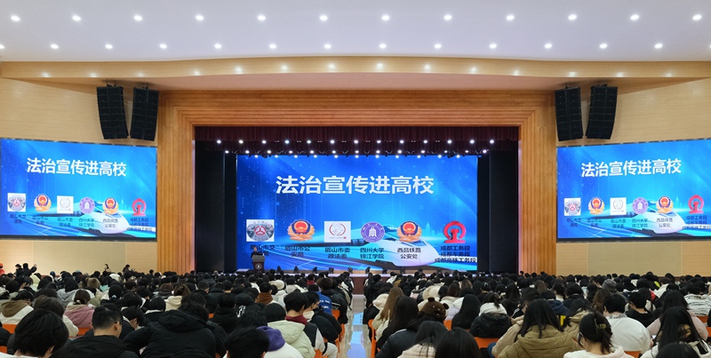 为进一步加强法治宣传教育,提升师生铁路交通安全意识,12月11日,“法治宣传进高校”暨铁路交通安全知识讲座在betvictro伟德app下载大礼堂举行。眉山市委政法委机关党委书记余永松,学校党委副书记、副校长钱臣林,中铁成都局成都工务段党委书记肖斌,副校长林宇等出席活动,师生代表700余人参加。