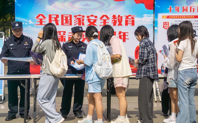 活动现场,近20个图文并茂的国家安全教育主题宣传展板有序陈列,为师生系统展示总体国家安全观核心要义、典型案例及相关法律法规。公安民警发放《网络安全知识宣讲手册》《打击整治网络谣言专项行动》等宣传资料,系统宣讲了网络安全、反恐知识等涉国家安全法律法规知识,并设置法律咨询台,就网络信息甄别等实际问题进行专业解答。