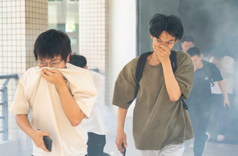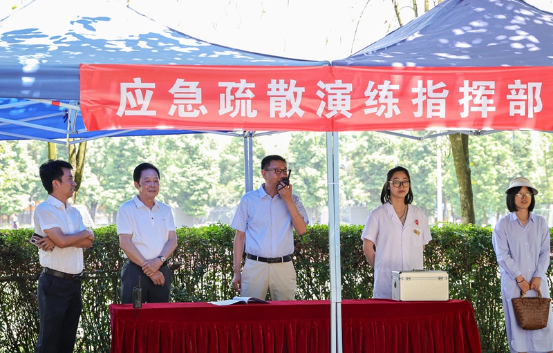 实战演练,绷紧应急“安全弦”。本次重点演练遇到地震、火灾、自然灾害等紧急情况时的逃生疏散方法和注意事项。14时10分,演练总指挥、校党委副书记、副校长钱臣林宣布演练开始。随着警报声响起,师生员工迅速进入应急状态,师生们在图书馆工作人员、辅导员及安保队员的指挥下,捂住口鼻、低头弯腰,沿疏散路线迅速撤离到安全集结点,辅导员随即清点人数,并上报指挥部。整个演练过程安全、高效、规范、有序,师生员工积极配合,现场秩序井然,达到了预期效果。